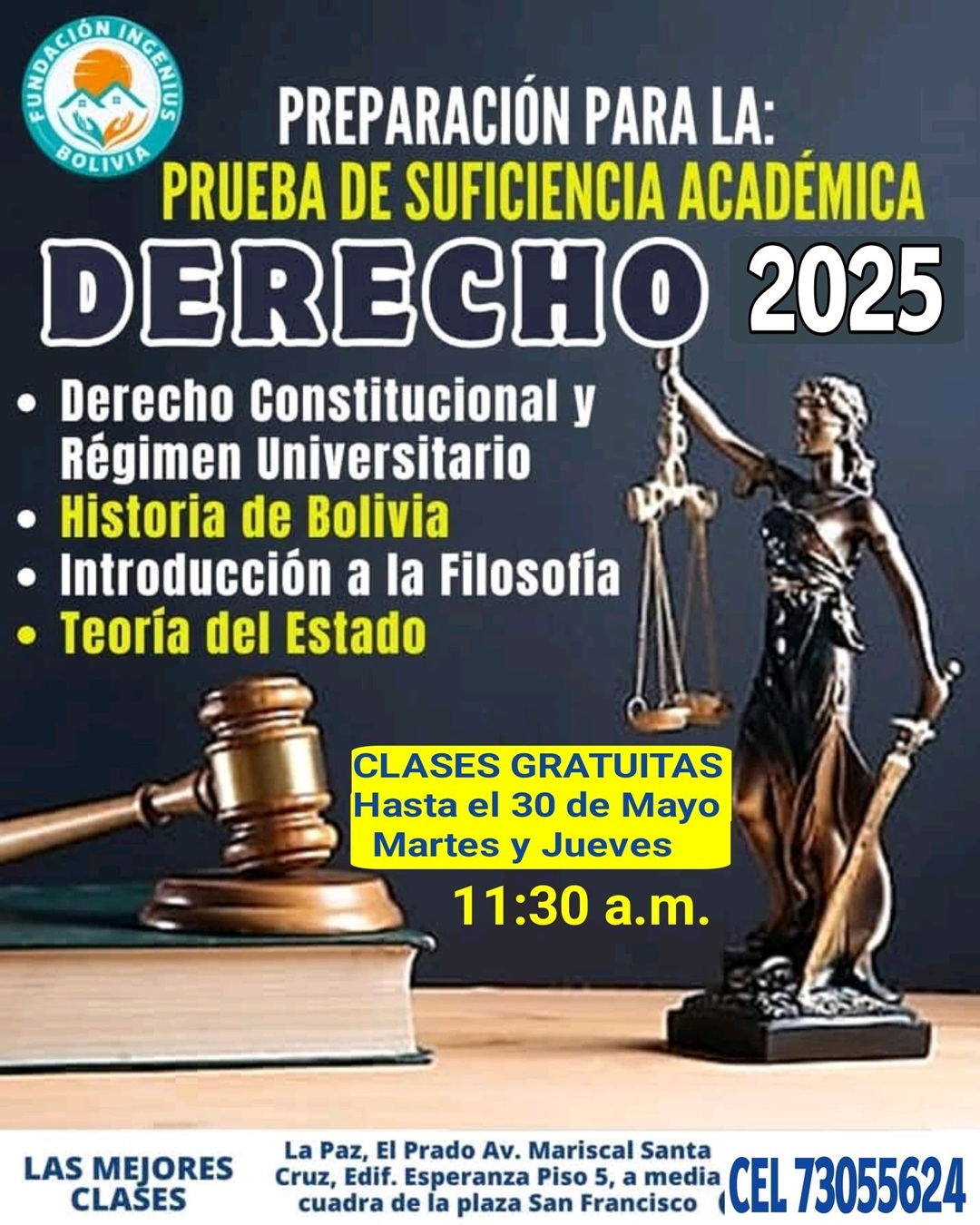 Fundacion Ingenius Bolivia Oficial, brinda el apoyo gratuito en la preparación para la Prueba de Suficiencia Académica, de la Carrera de Derecho U.M.S.A.